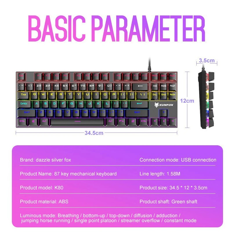 Gaming Keyboard 87 Keys Wired Gaming Mechanical Keyboard RGB Backlight For Gaming Laptop Computer Gamer Keycaps PC Accessories