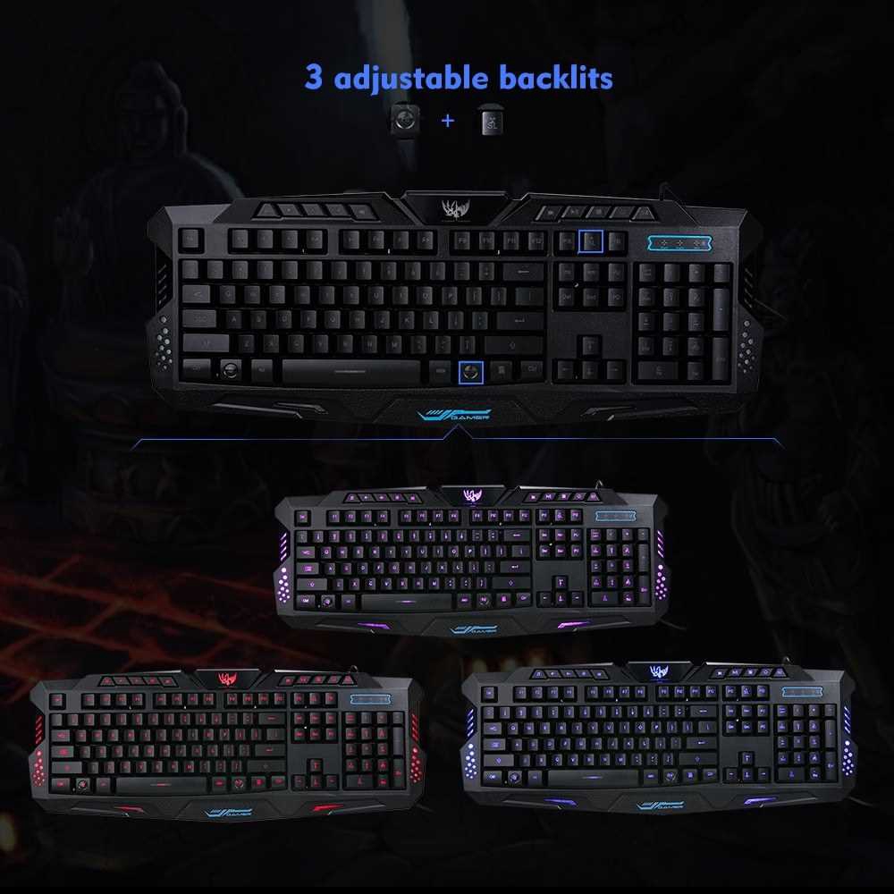 Gaming Keyboard Waterproof Characters Keyboard USB Wired 3-Level Backlit Keyboard Ergonomic Keyboard Switchable LX-K002