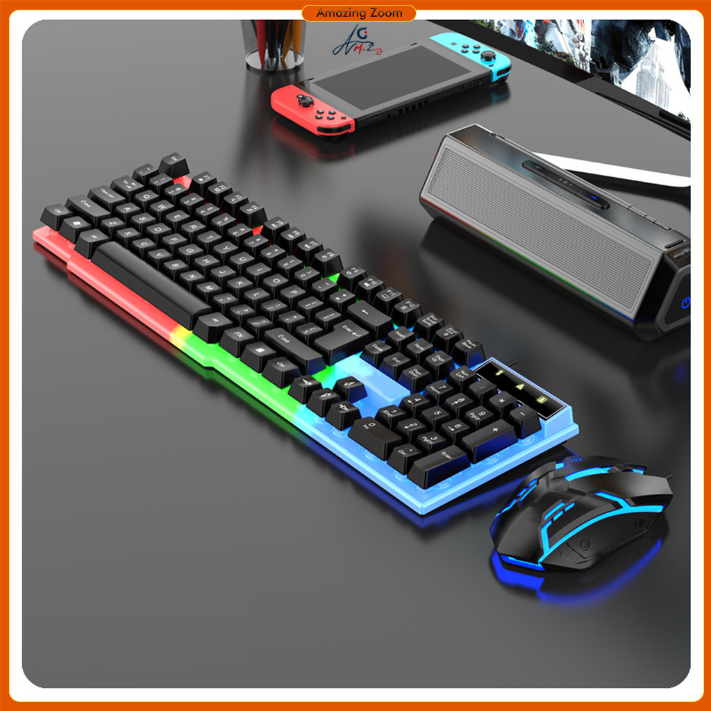 Gaming Keyboard and Mouse Combos Rainbow Backlight Lightweight USB Mouse 104 Keys USB Wired Keyboard