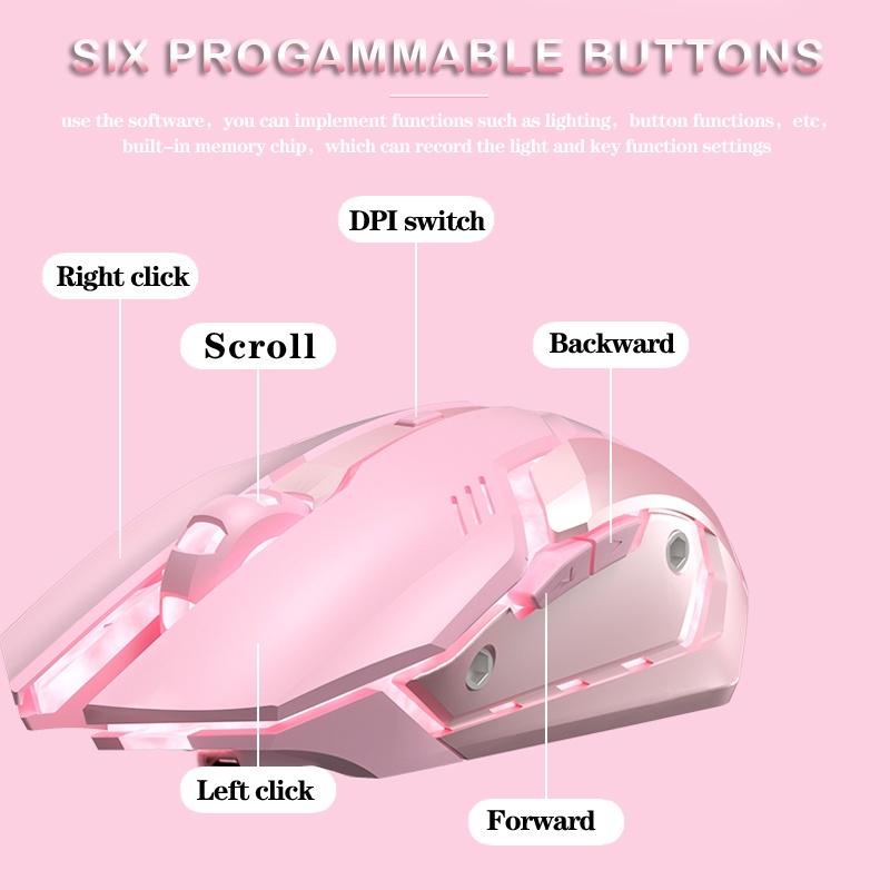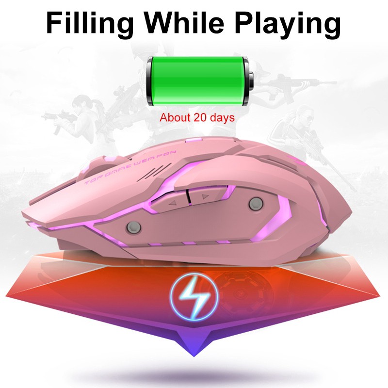 Gaming wireless mouse rechargeable pink mouse optical mouse USB computer laptop mouse 2.4G