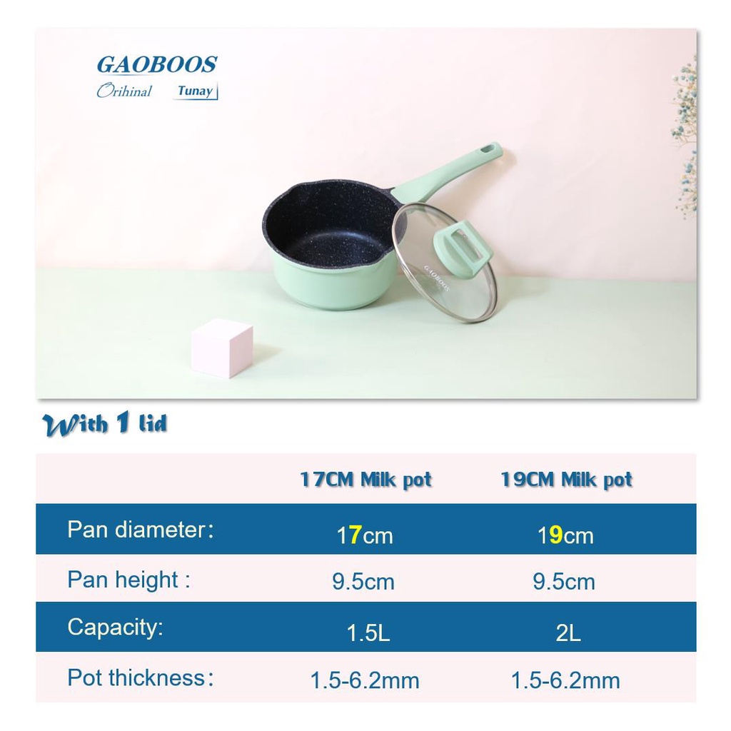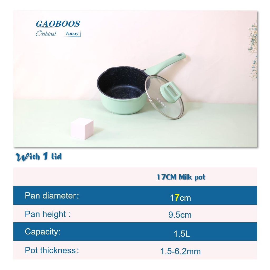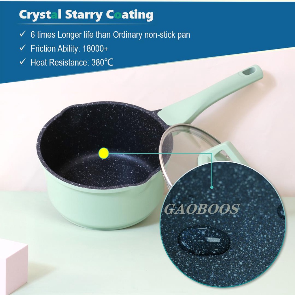 Gaoboos Crystal Coating Non Stick Sauce Pan Induction Ceramic Single Baby Milk Cooking Pot 16/18cm