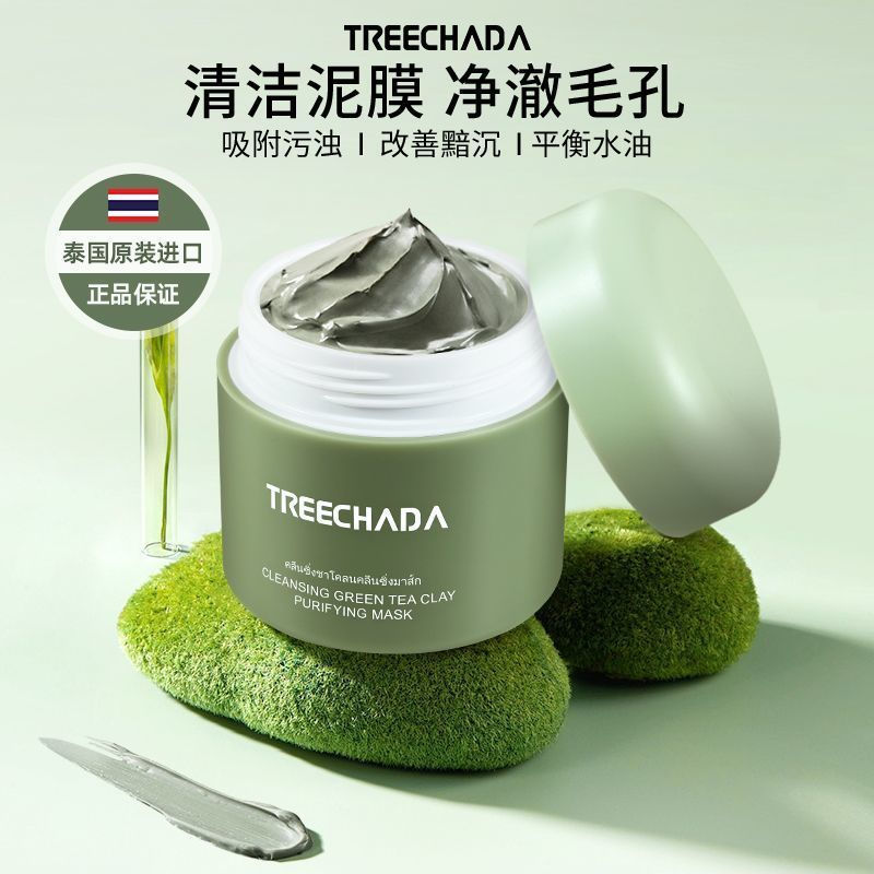 New Product#TREECHAD Tea mud mask for blackhead removal, exfoliation, deep cleansing, oil control, and pore refining, gentle and suitable for students12Y