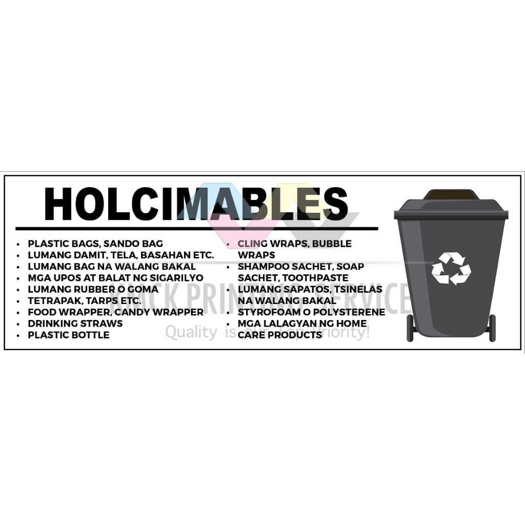 Garbage Label Holcimables, Recyclable, Residual, Compostable, Medical, Sanitary Waste Etc.