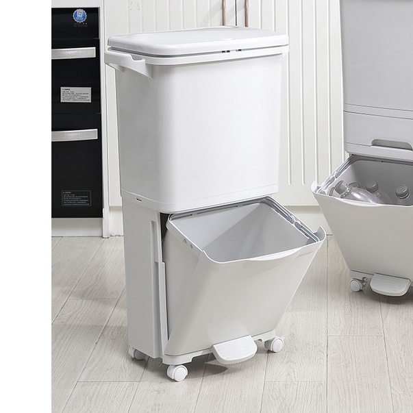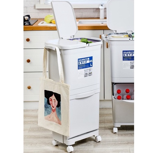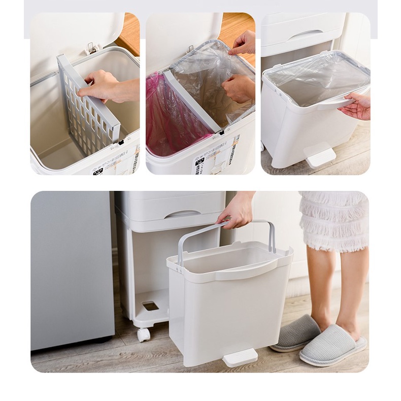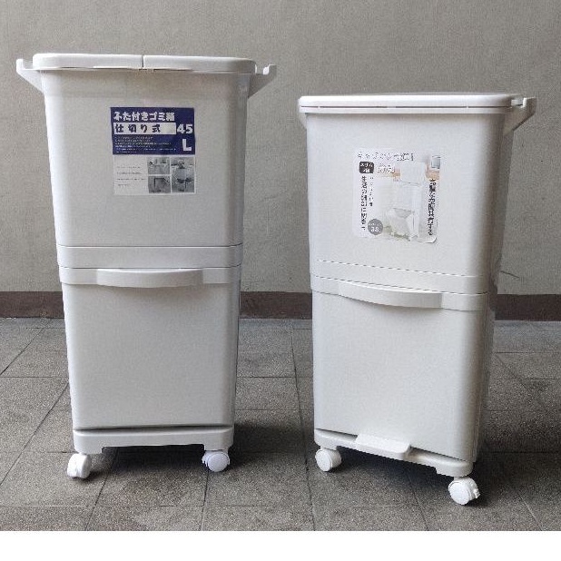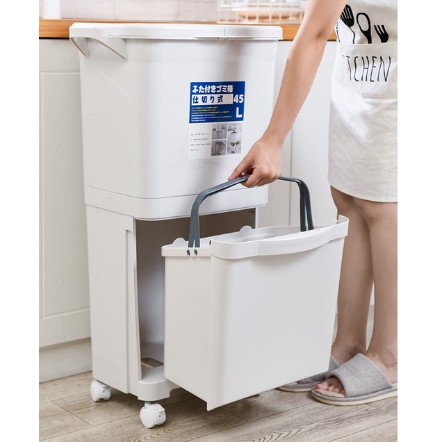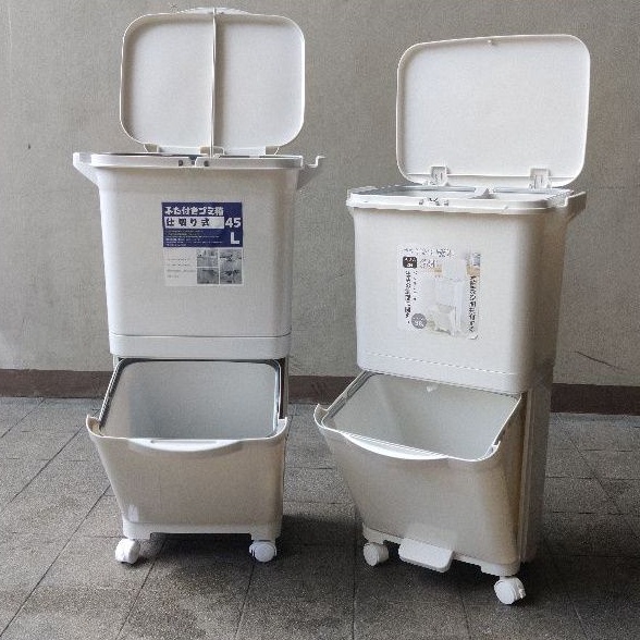 Garbage Trash Bin /Japanese Style / Wet and Dry Sorting Trash Bin / 3 Way Movable Trash Bin