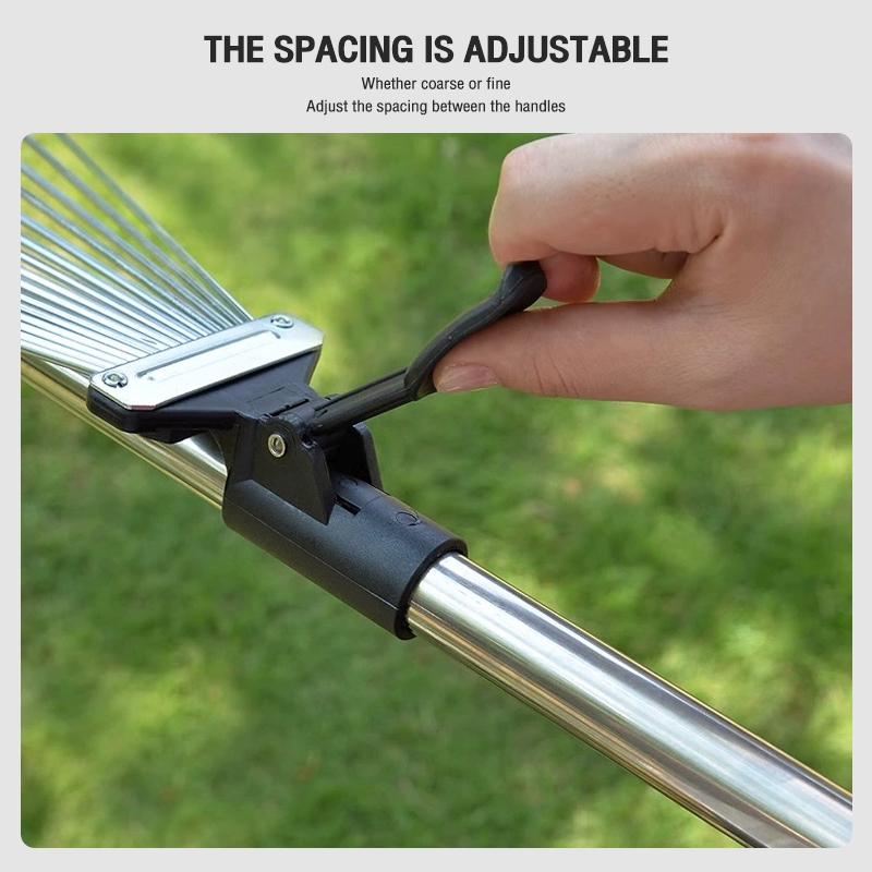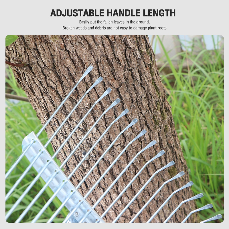 Garden grass rake, 15 tooth carbon steel garden rake, flat ground leaf sweeping tool
