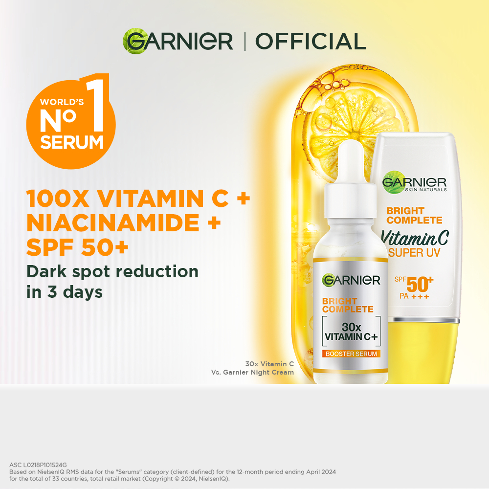 Garnier Vitamin C Suncare Duo: Niacinamide Serum (30ml) and UV Natural Sunscreen SPF 50 (30ml)