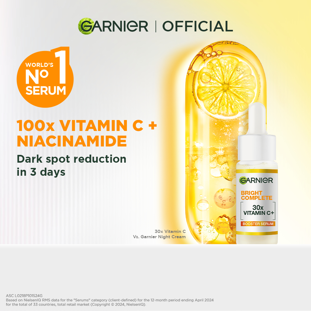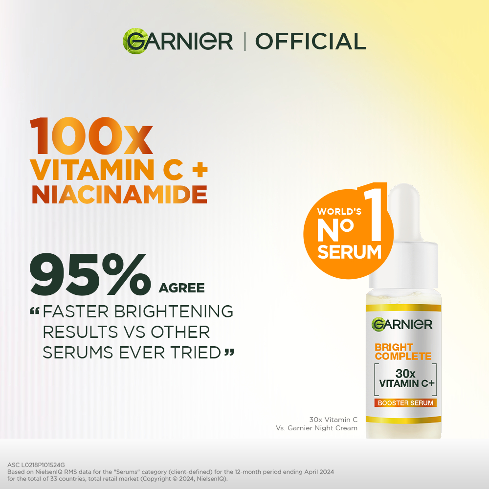 NEW & IMPROVED Garnier 30x Vitamin C+ Niacinamide Serum (15ml) with Salicylic Acid, Booster Serum
