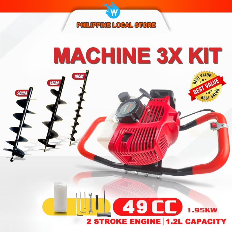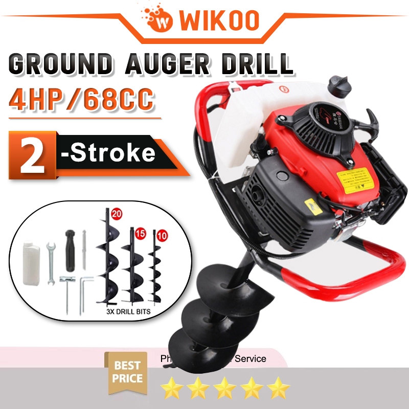 Gasoline Engine Earth Ground Auger Drill Machine 2 Stroke 4HP Post Hole Digger With Free Drill Bits