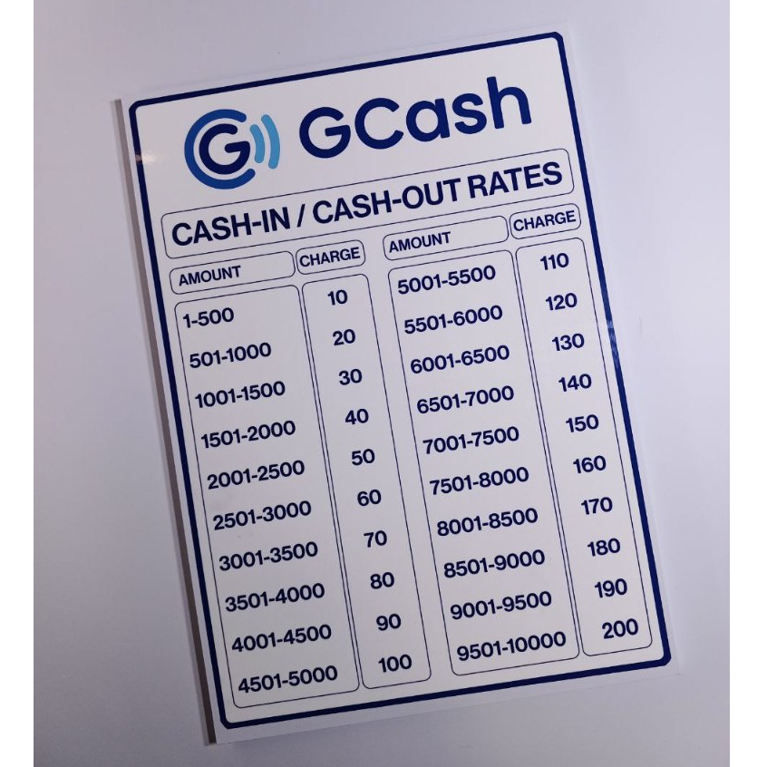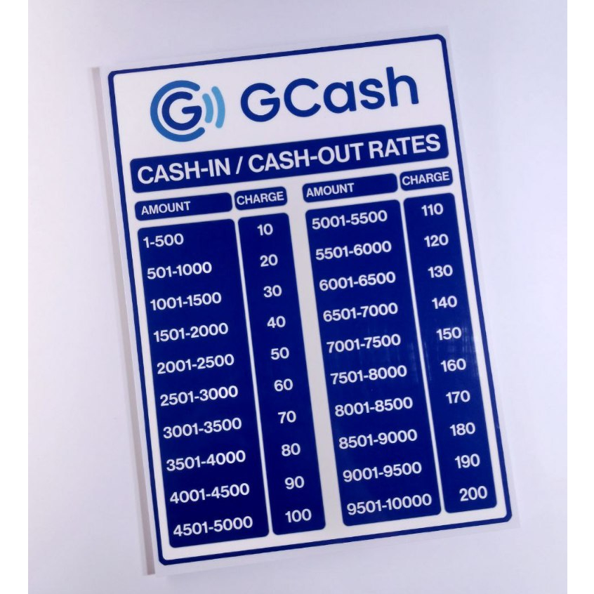 Gcash Cash Out Rates, Fees and Charges Chart Signs For E-Load Business and Store Owners