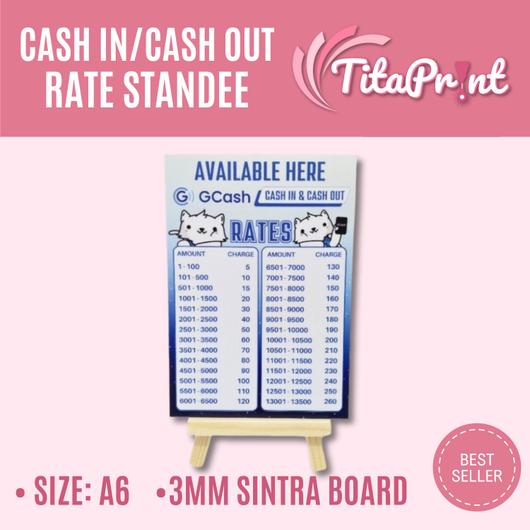 Gcash Cash in Cash out Rate Signage Gcash by tita print