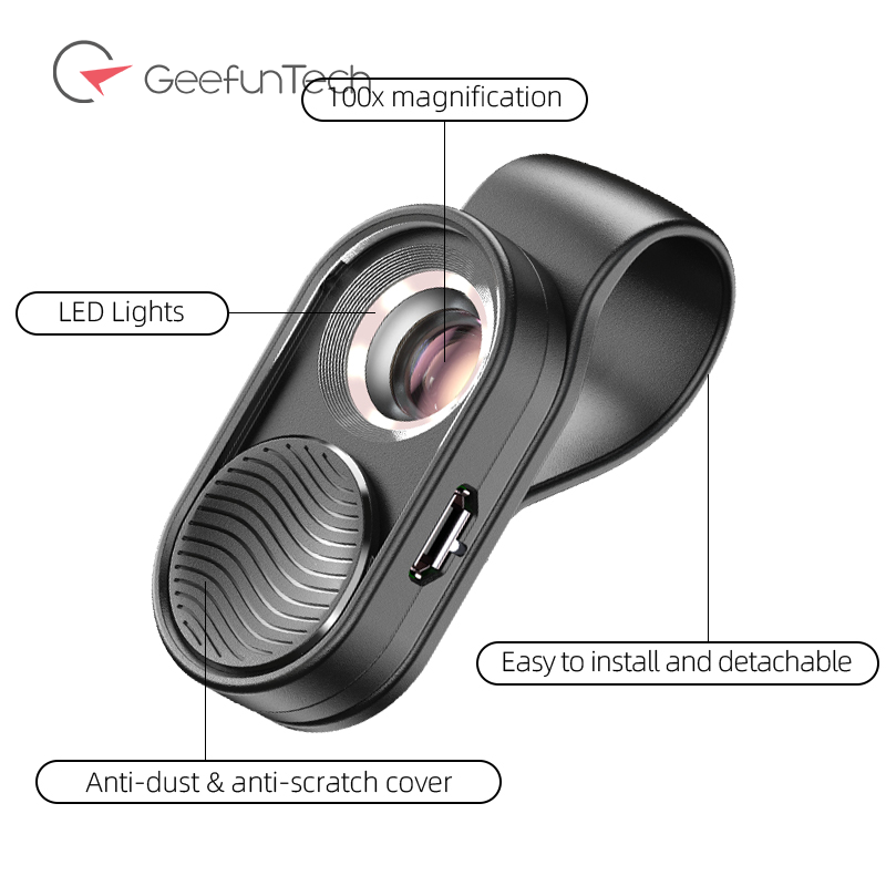Geefuntech 100x Microscope Micro Lens Mobile Phone Mini Magnifying Led Light Pocket Glass Microscopes With Universal Clip