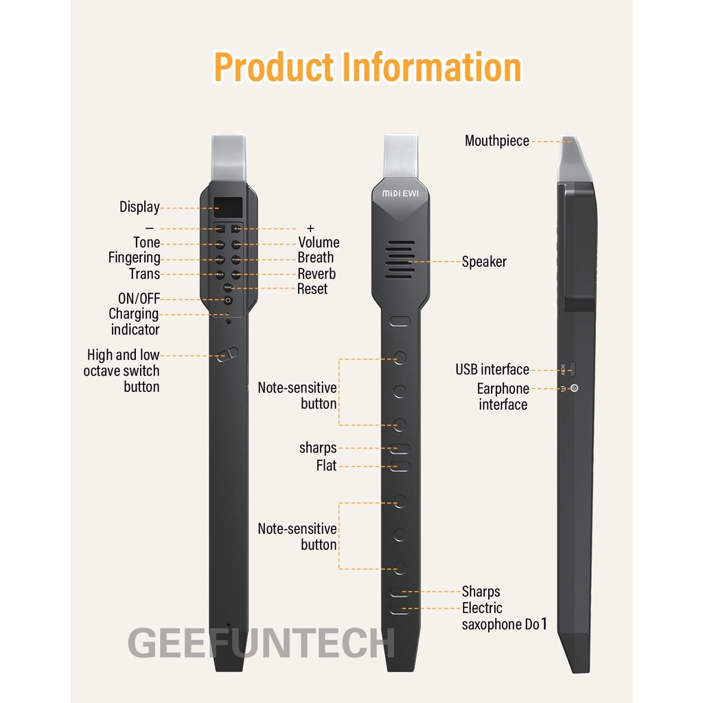 Geefuntech Mini Digital Wind Saxophone Electronic Instrument With Built-In Battery Charging Mode For Various Musical Sound