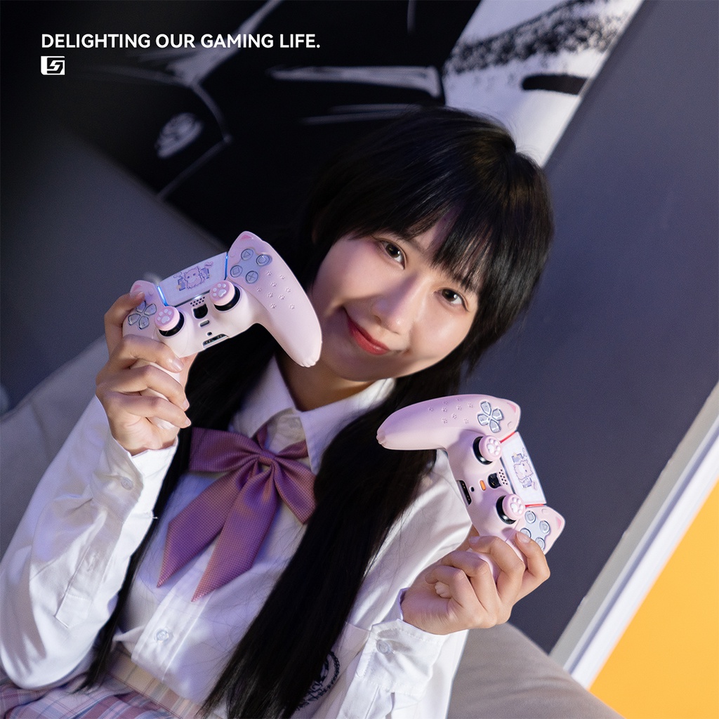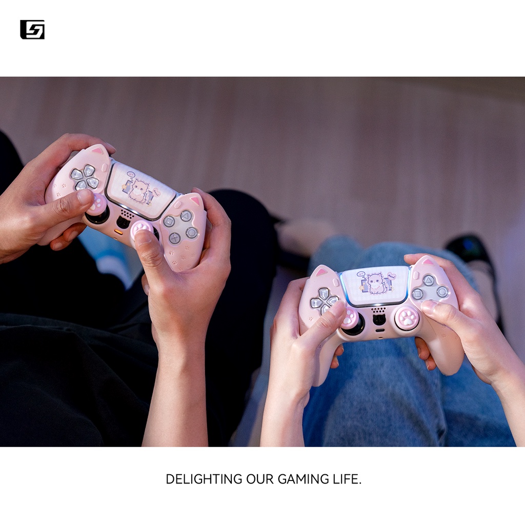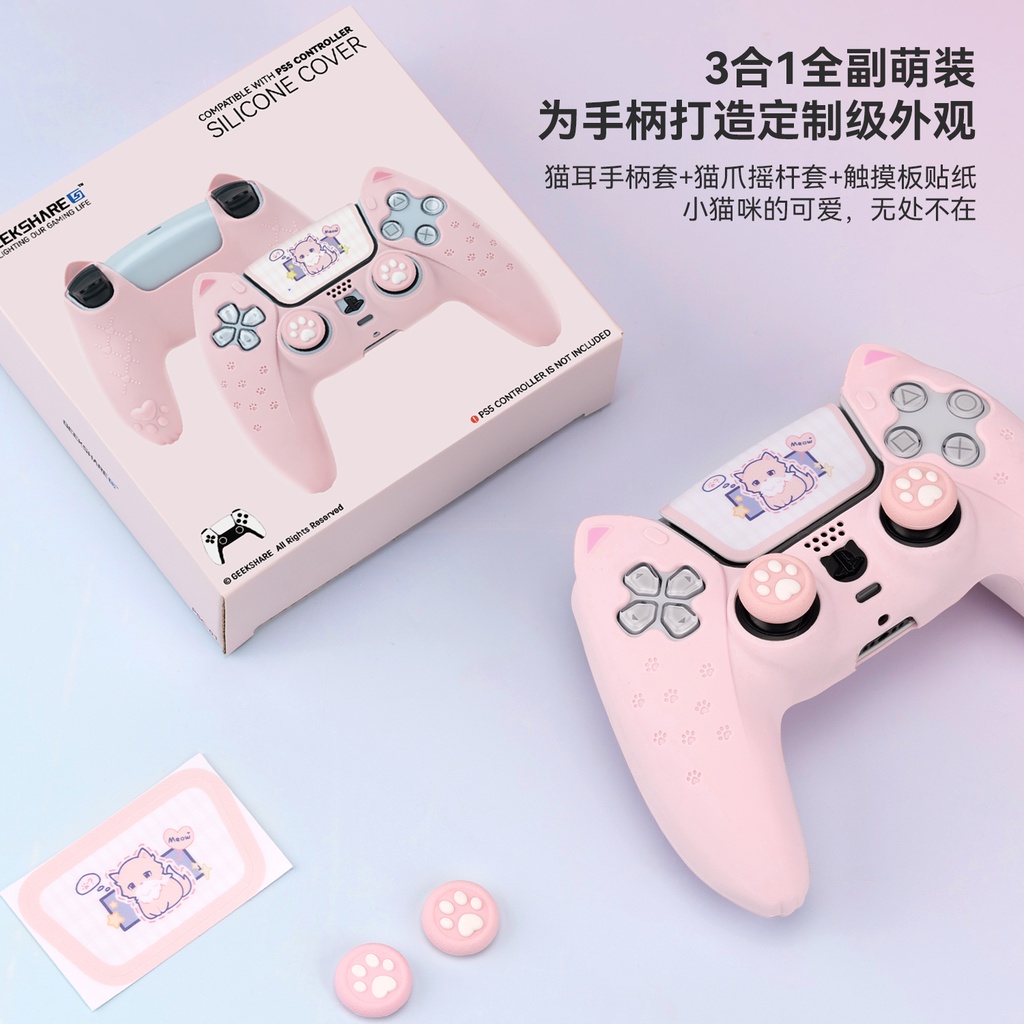 GeekShare PS5 PlayStation DualSense Controller Case Cute Cat Ear Silicone Shockproof Case
