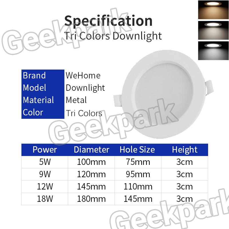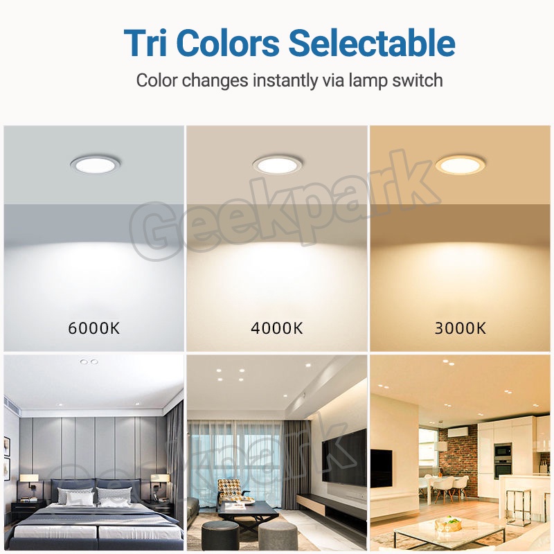 Geekpark Pin Light Downlights for Ceiling Tri Colors 5W 9W 12W 18W LED Recessed Panel Light