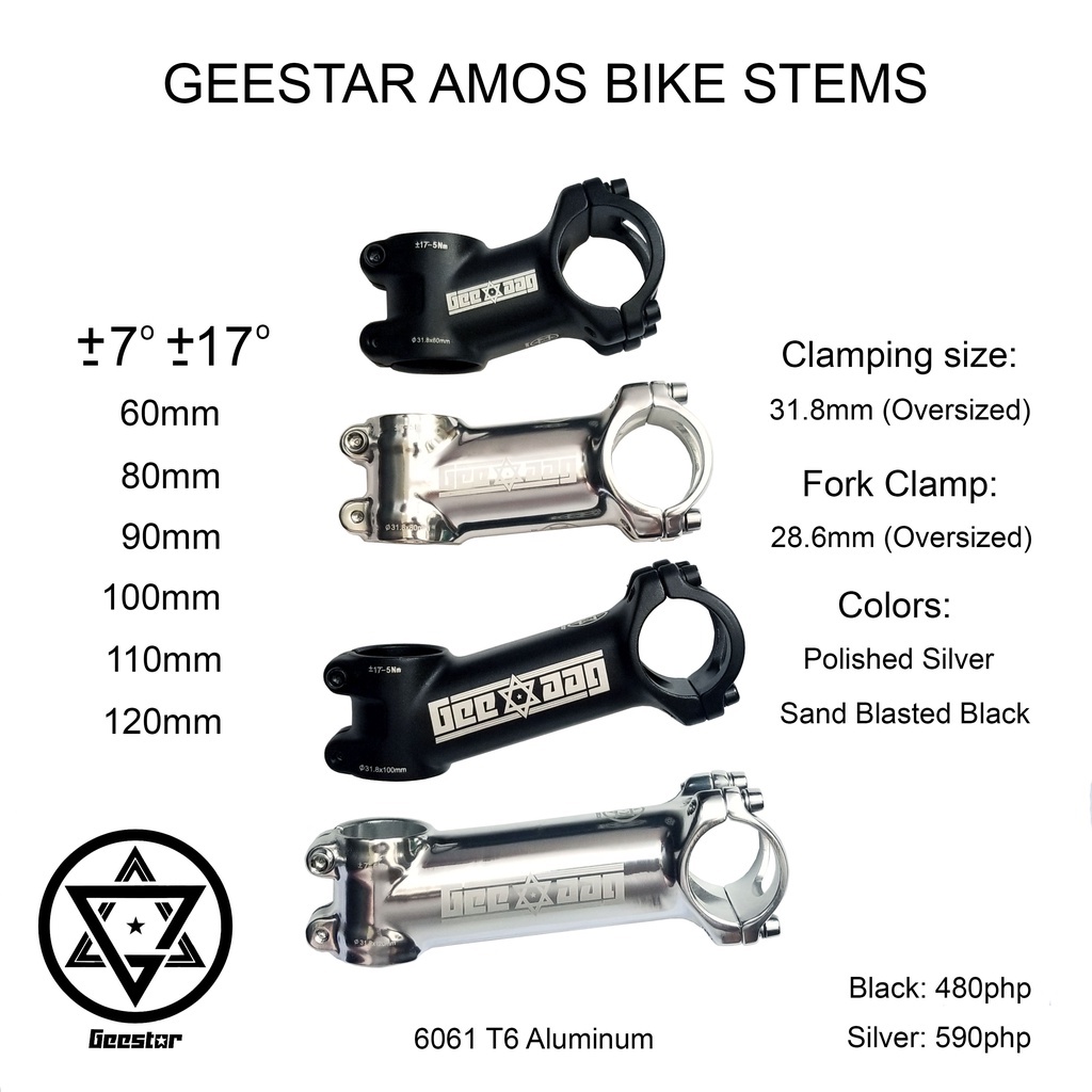Geestar Amos Bike Stem Oversized Clamping 60mm 80mm 90mm 100mm 110mm 120mm -7 -17 +7 +17 31.8mm