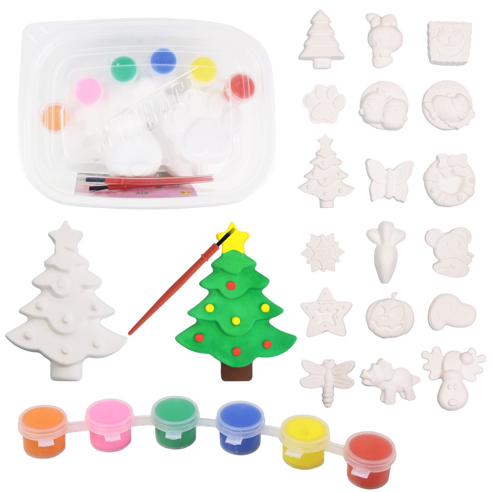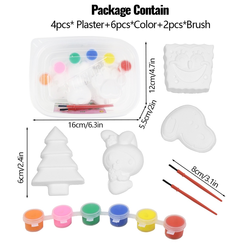 Geetoy 12pcs/box Plaster Paint Figurine Random Design with Paint and Brush Educational Toys for Kids