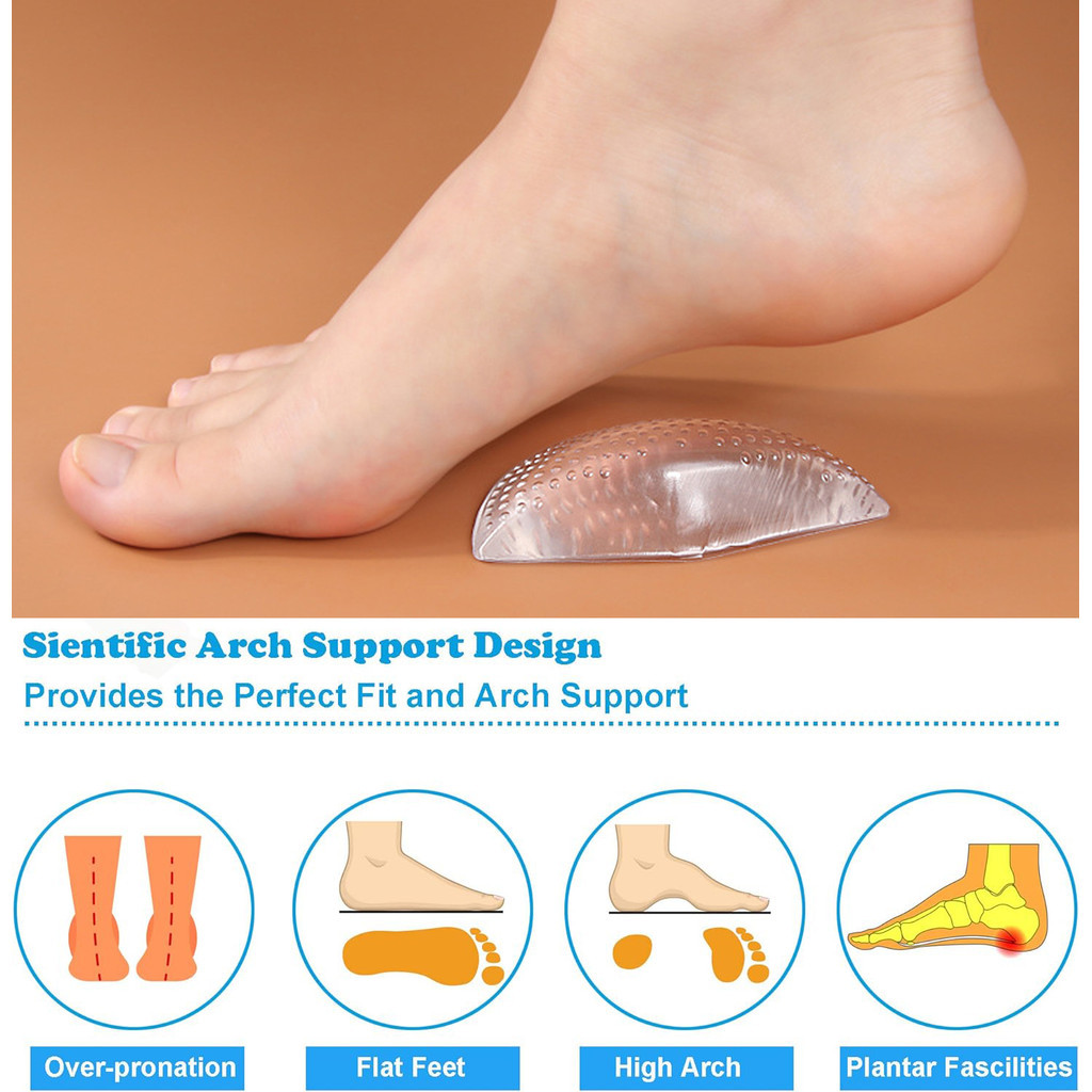 Gel Arch Support Cushions for Men and Women Reusable Insoles for Flat Feet and Pain Relief