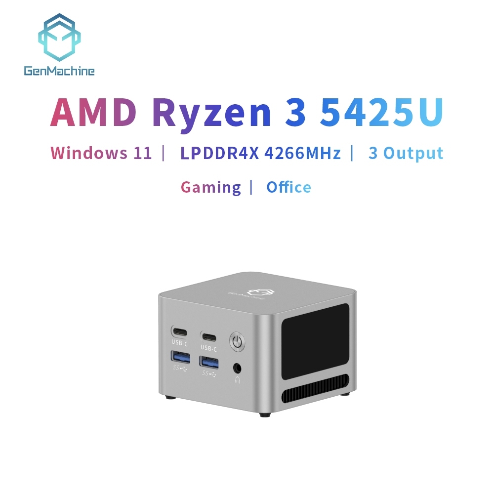 GenMachine Portable Mini PC AMD Ryzen 3 5425U LPDDR4X 8GB 4266MHz SSD Windows 10/11Pro Mini PC for Home Office and Streaming Free Shipping Gaming PC 4K Mini Computer compact pc