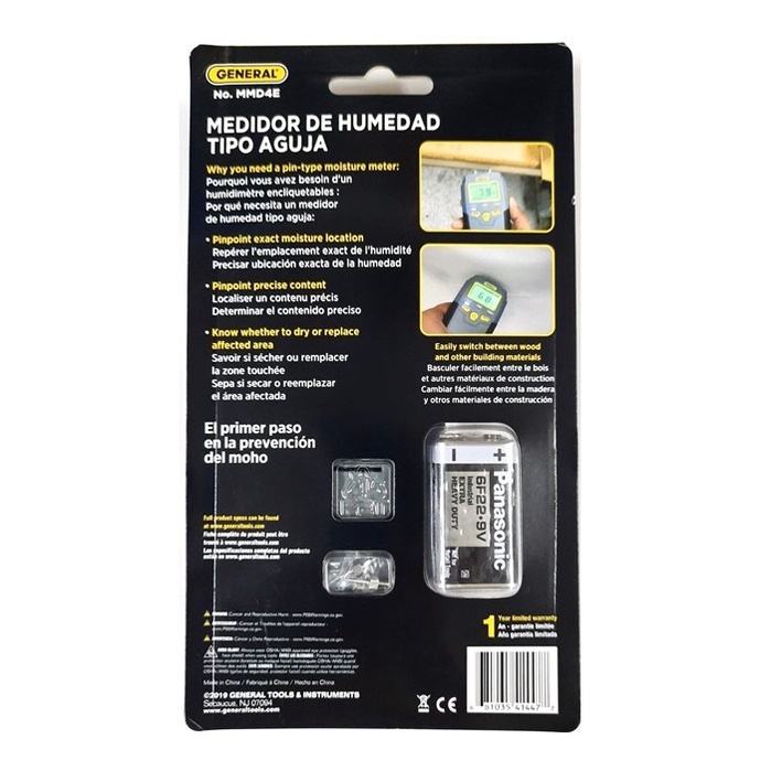 General Tools MMD4E Digital Pin-Type Moisture Meter, Water Leak Detector
