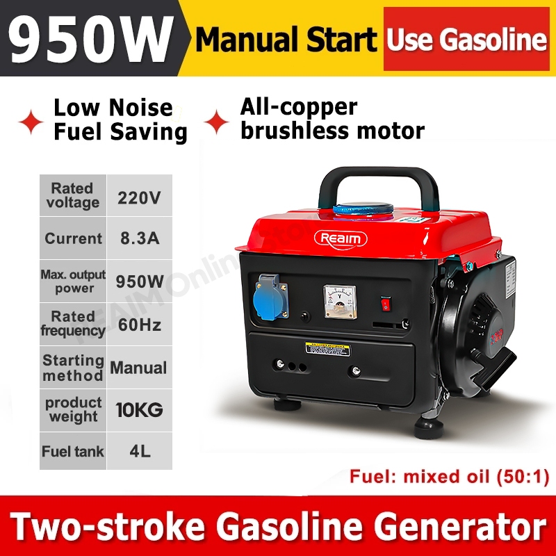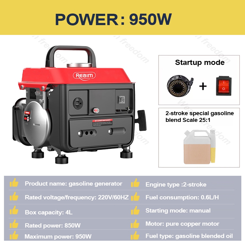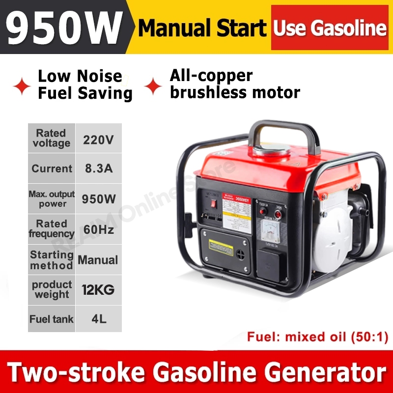 Generator Gasoline 950W/60HZ Small Household Generator 2-Stroke Outdoor Portable Generator