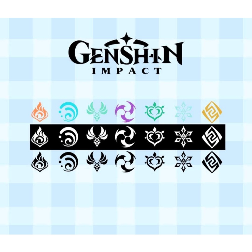 Genshin Impact! Elements Logo Pyro, Geo, Dendro, Cryo, Electro (Vinyl Waterproof Glossy)