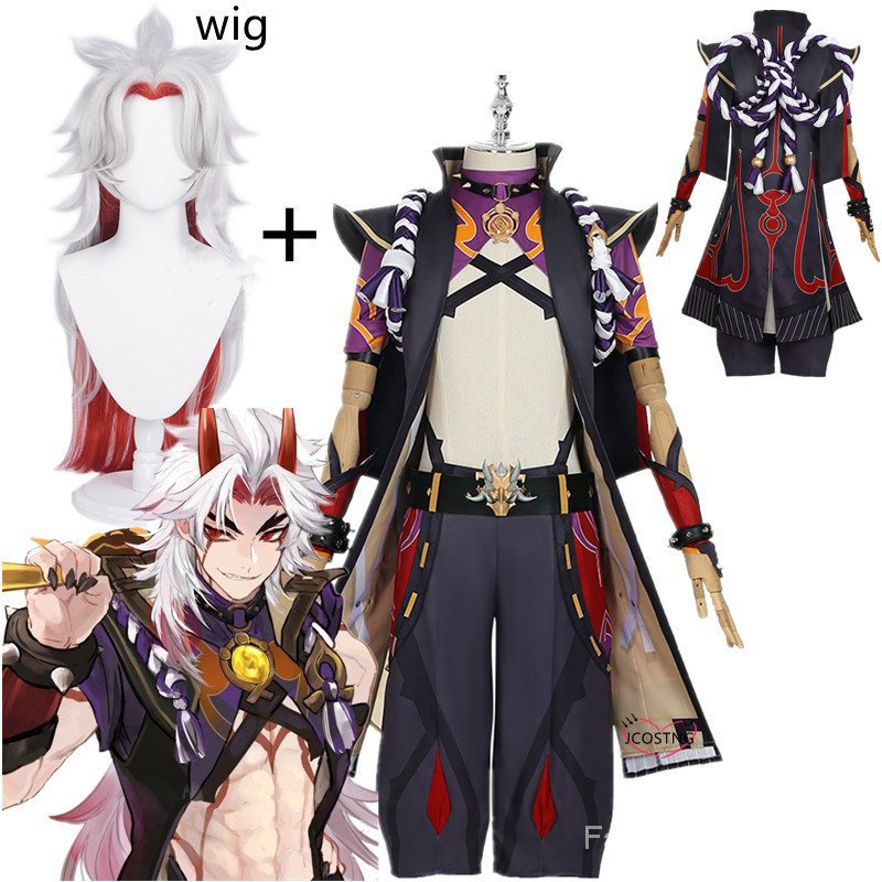 Genshin Impact Arataki Itto Cosplay Costume and Arataki Itto wig,Arataki Itto shoes,Arataki Itto 9