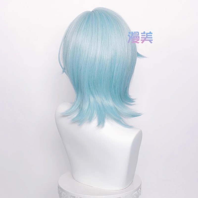 Genshin Impact Eula Cosplay Wig 48cm Blue Heat Resistant Synthetic Wigs