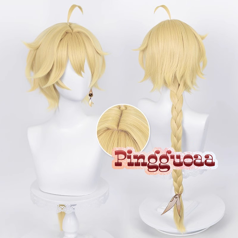 Genshin Impact Traveler Cosplay Aether Lumine 50cm/80cm Long Scalp Wigs Heat Resistant Synthetic Hair Halloween