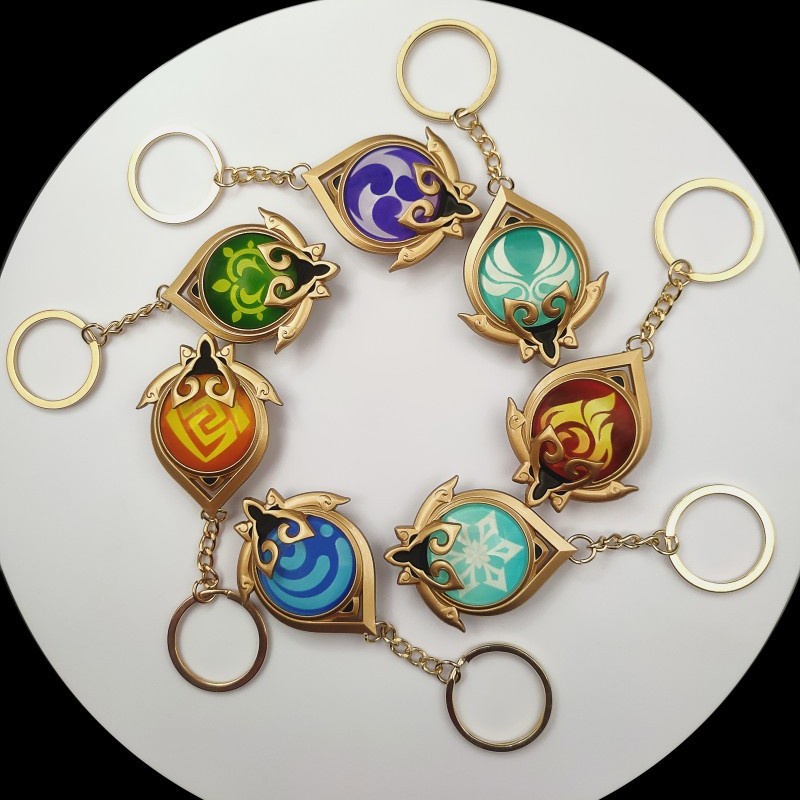 Genshin Impact Vision Luminous Key chains Charm Game Project Cosplay Pendant Keyring Accessories