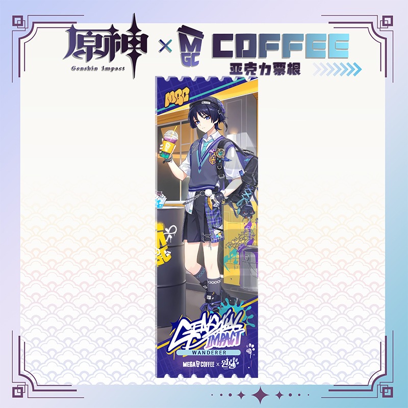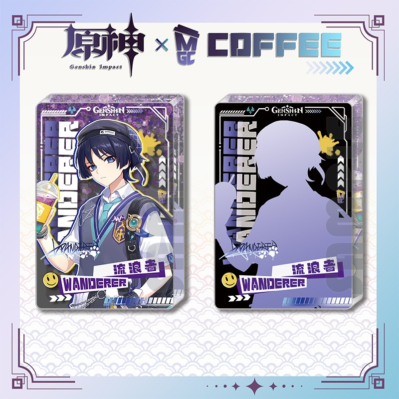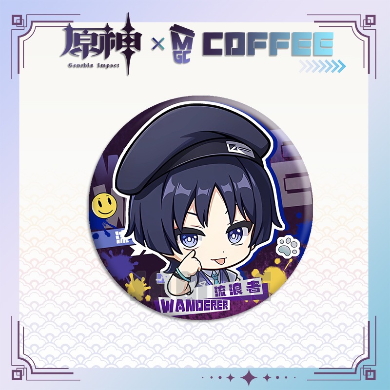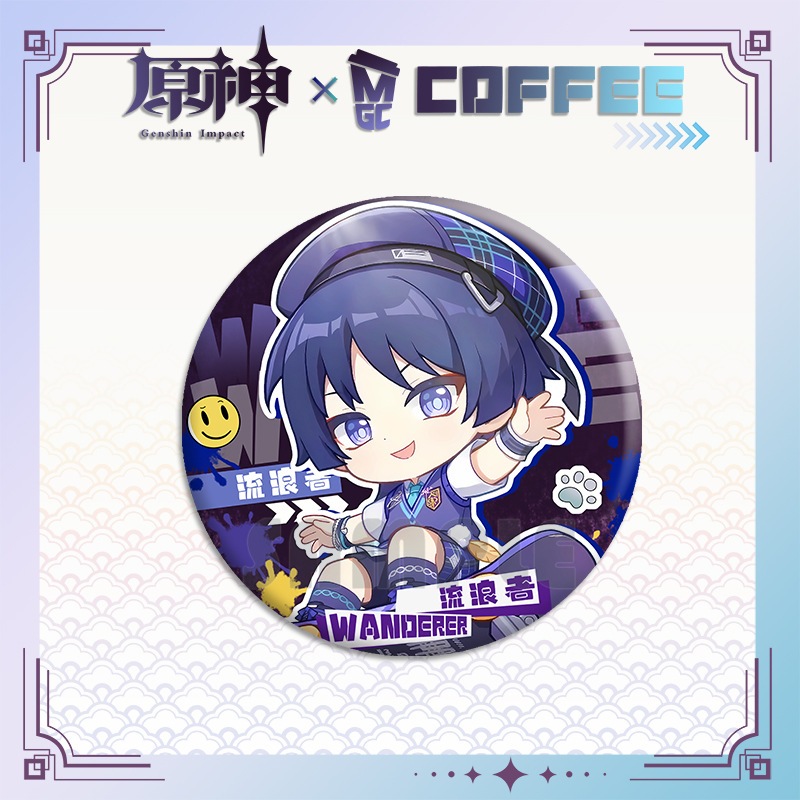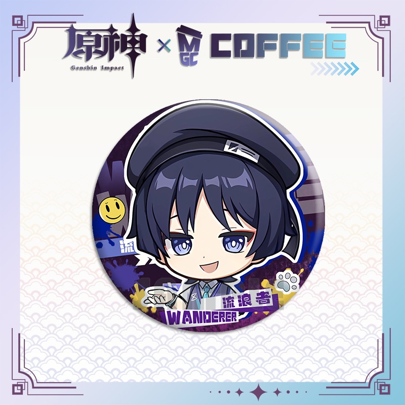 Genshin Impact Wanderer Mega Coffee Pin Keychain Acrylic Standee Merchandise
