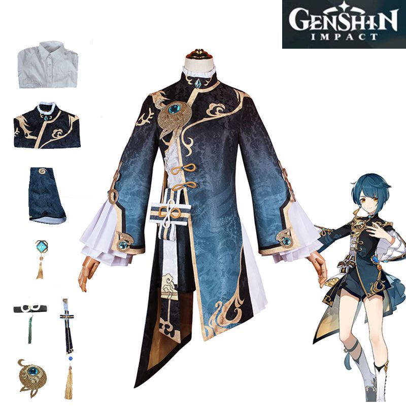 Genshin Impact XingQiu Cosplay Costume Xing Qiu Outfit Shoes Earrings Wig Cosplay Halloween Costume Women