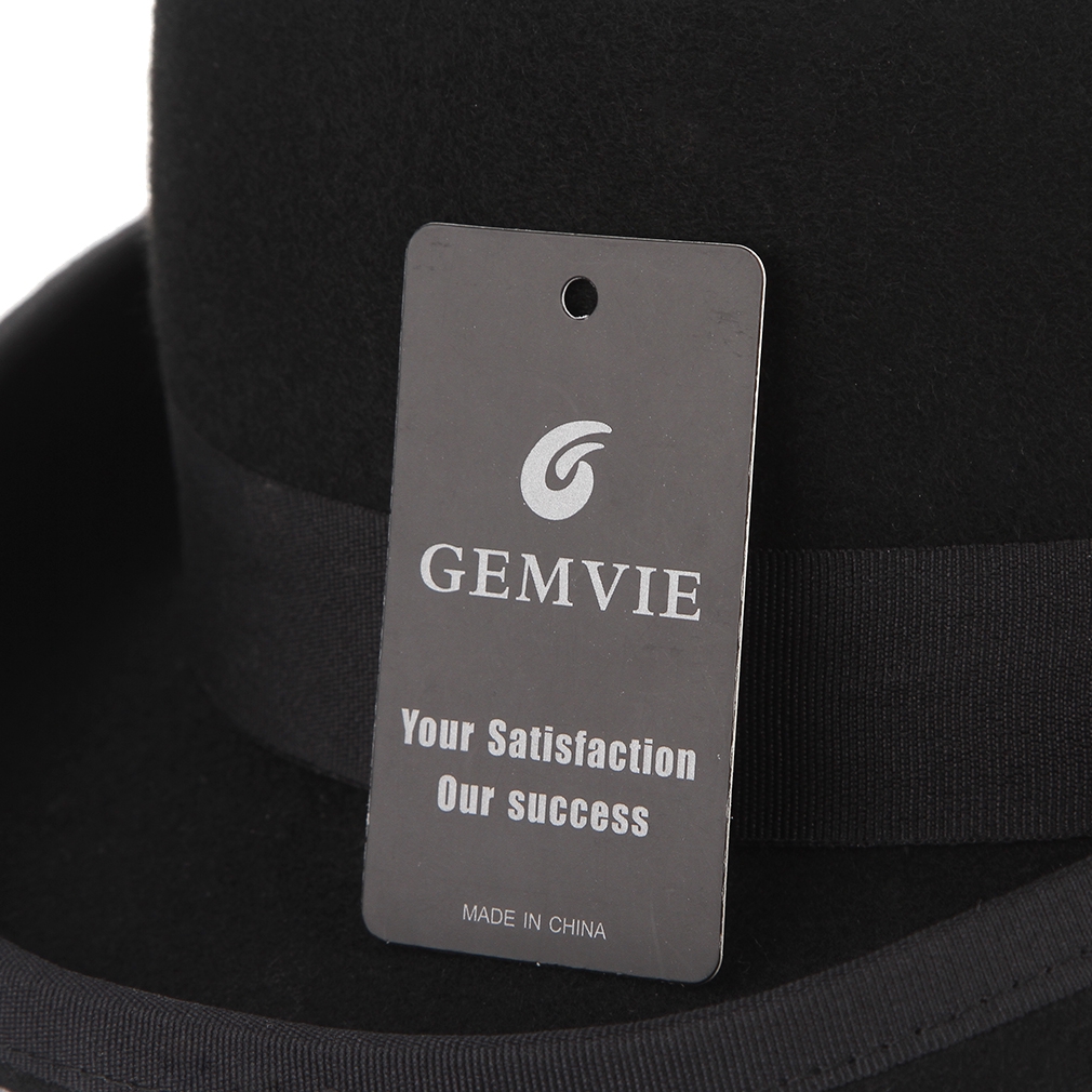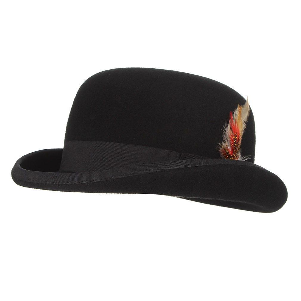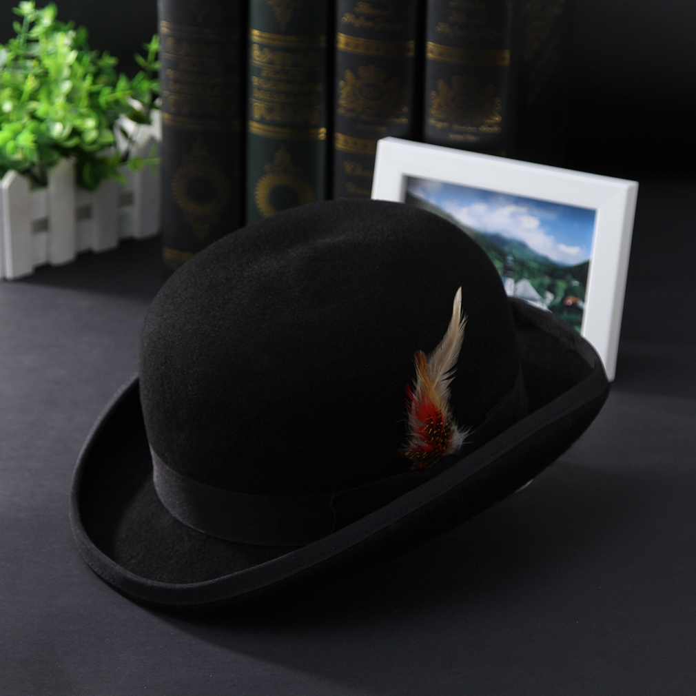 Gentleman Bowler Hat Men Feather Decor Wool Felt Fedora Hat