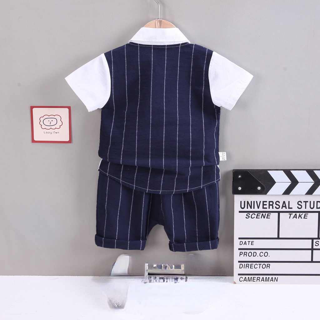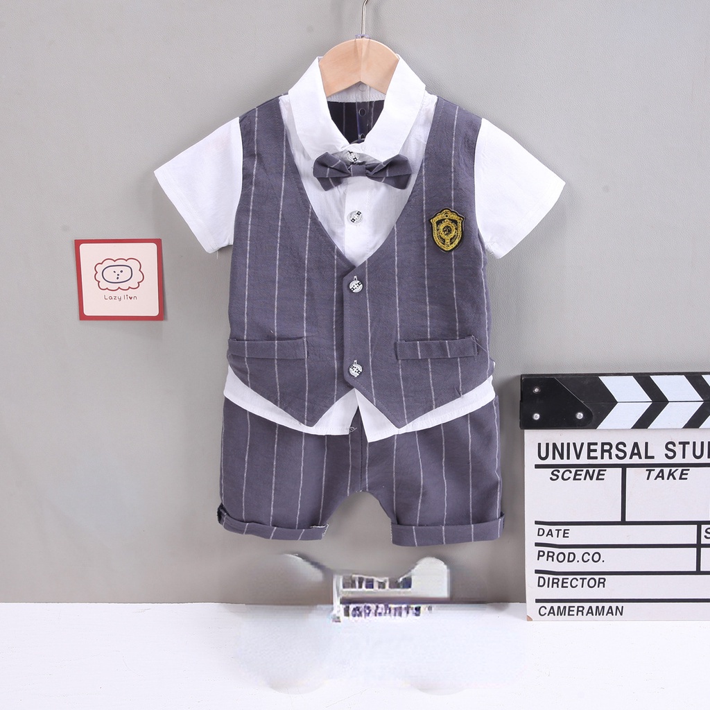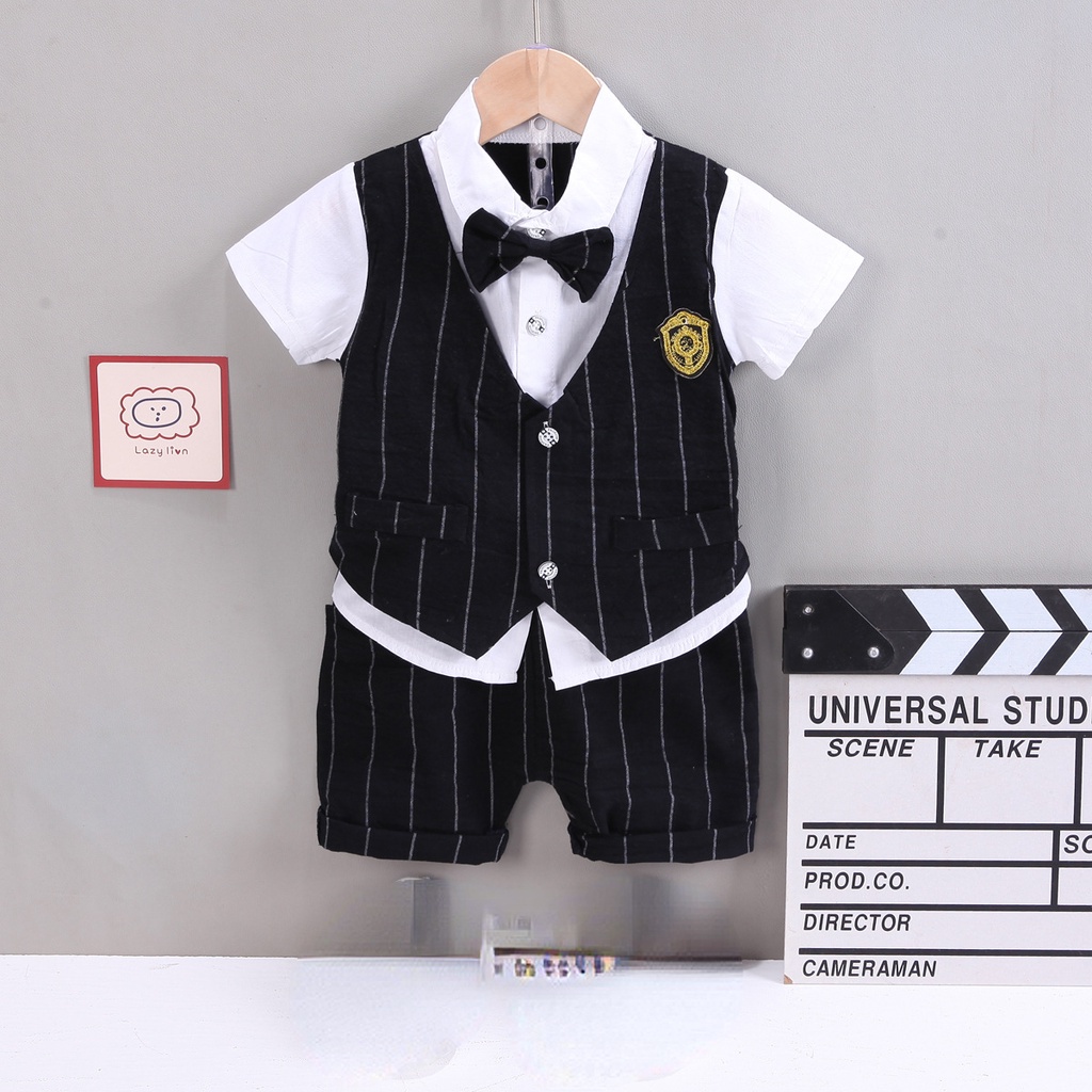 Gentlemen Boss Baby Boy Outfit 1 Year Old School Uniform Costume for Kids Baby False Two-piece Set Vest Tops + Short Pants Toddler Wedding Suit Set Formal Attire for Kids Terno