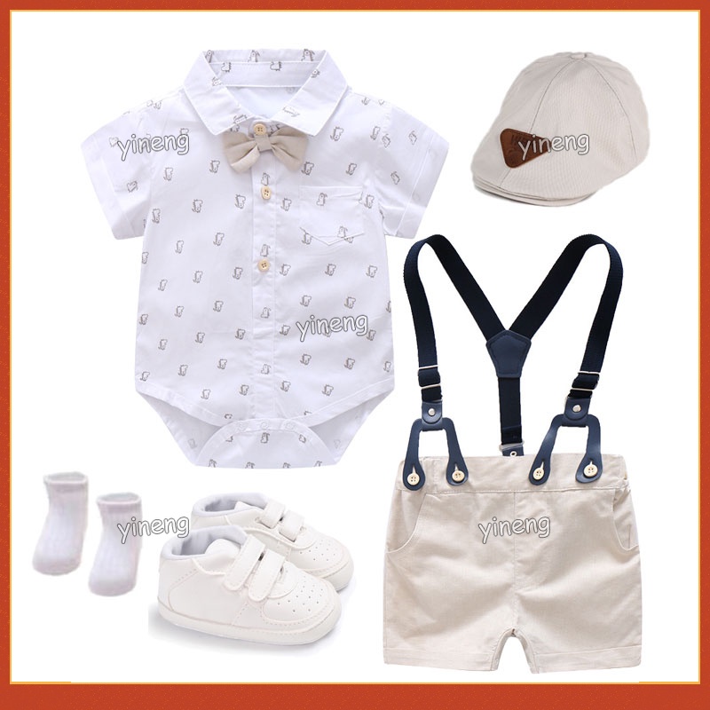 Gentlemen Clothes for Baby Boy 1 Year Old Baptismal Baby Boy Set Infant Christening Jumper Overalls Pants Bowtie Baby Boy Suit for Birthday Baptism Birthday Boss Baby Cotume