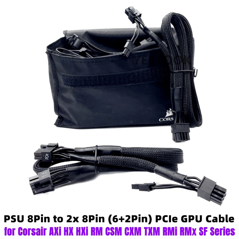 Genuine Corsair SF450 SF600 SF750 Modular PSU 8Pin to PCI-e Dual 8Pin 6+2Pin Sleeving GPU Graphic Card Power Cable 60+20CM 18AWG