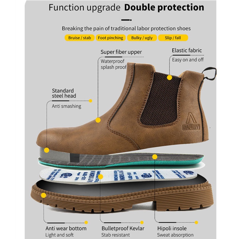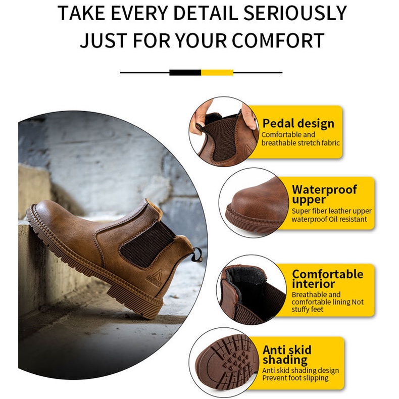 Genuine Leather Safety Shoes High-Top Boots Steel Top Cap Work Anti-Collision Welder Protective Anti-Slip Shock-Resistant Smash-Resistant Steel-Toed Pierc