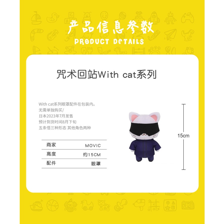 Genuine MOVIC Jujutsu Kaisen with CAT Puppet Dolls Pendant Inumaki Toge Itadori Yuuji Ryoumen Sukuna Gojou Satoru Plush Toys Gift