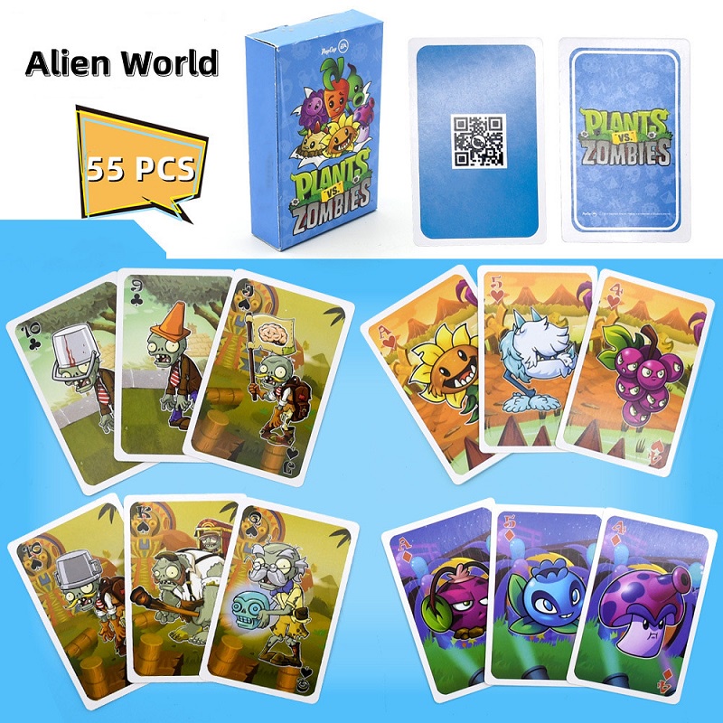 Genuine Plants vs Zombies Toy Card Game 55PCS Garden Wars Alien World Cherry Peashooter Snow Pea Game Cards Party Gift