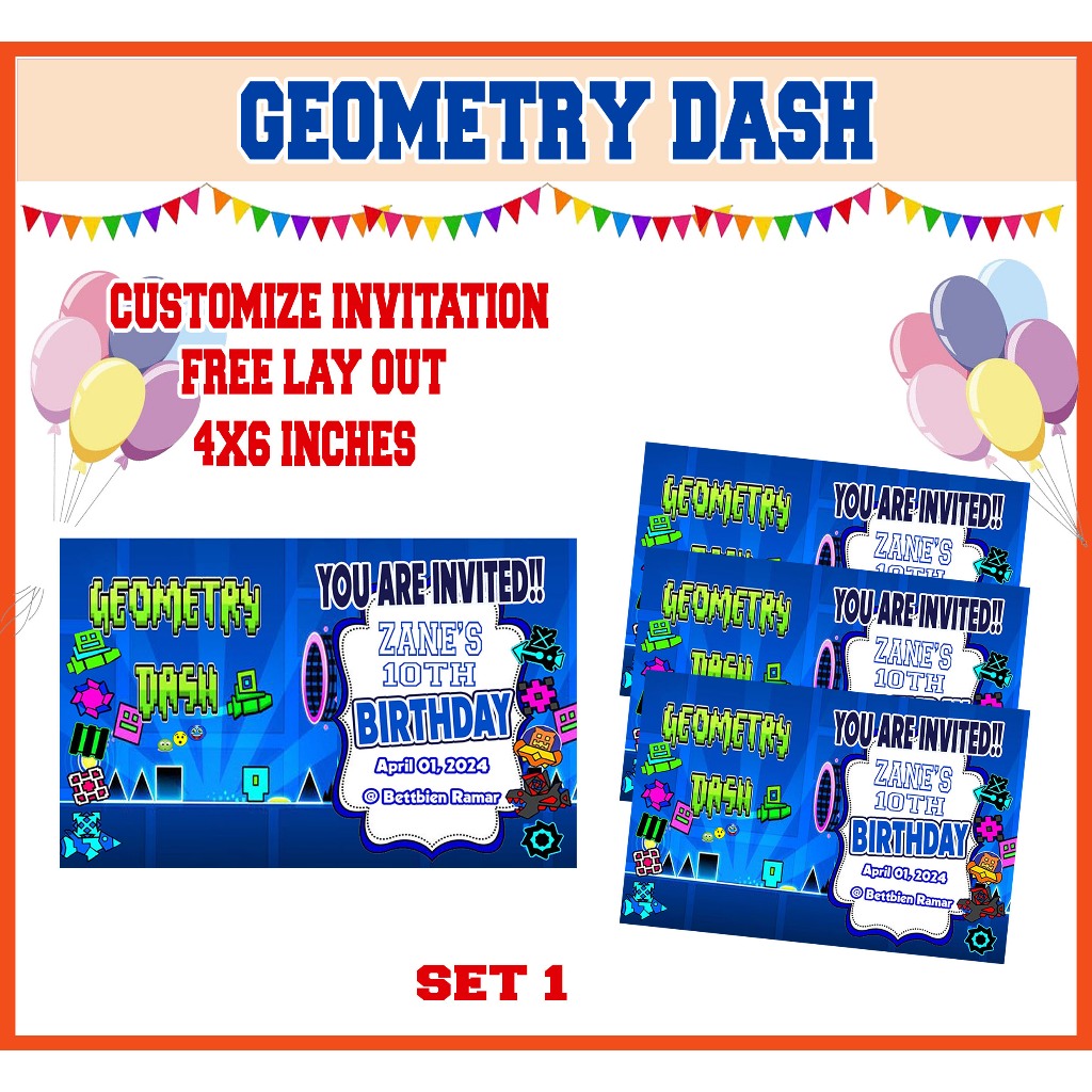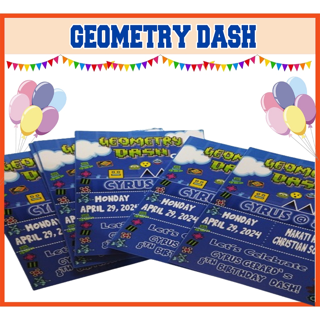 Geometry Dash Theme Birthday Invitation Card Customized - 4X6 INCHES