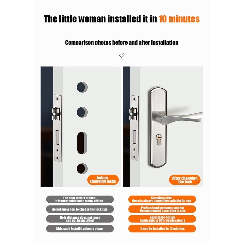 German Split Mute Door Lock Anti-theft Lock Core Alloy Sturdy Durable Stylish Doorlock Lockset Knob