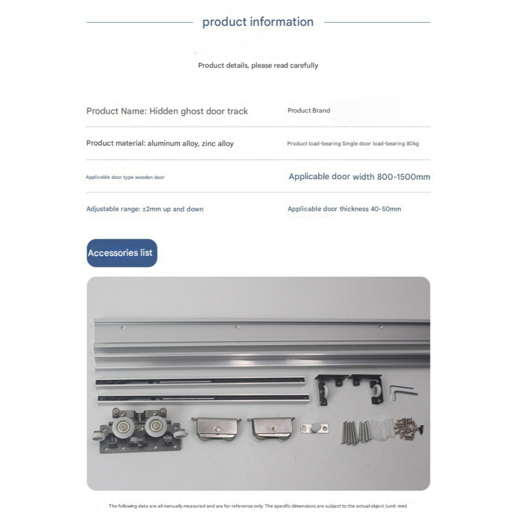 Ghost door hidden track Concealed sliding Door hardware bedroom kitchen Hanging Rail accessories