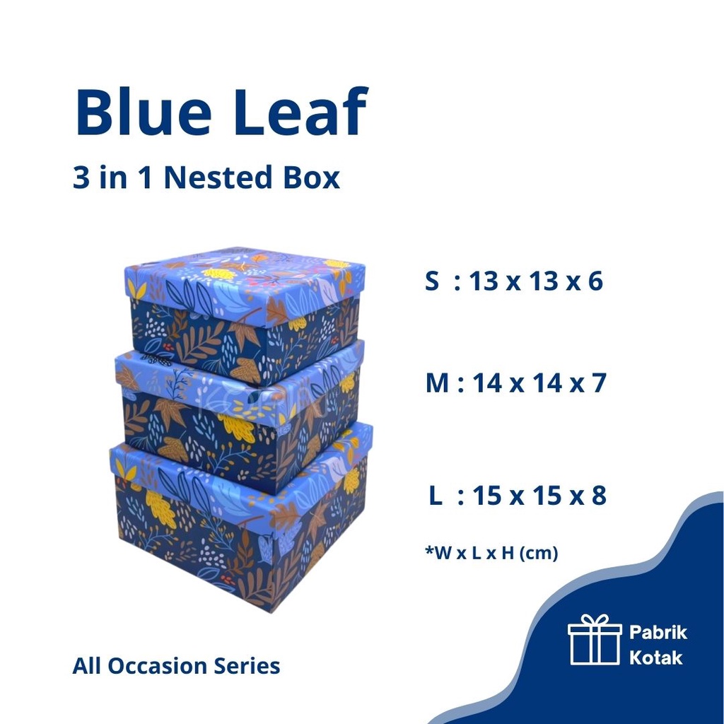 Gift Box - Hampers Box - 3 in 1 Nested Box - "Blue Leaf" (New All Colors)