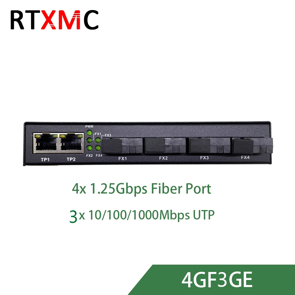 Gigabit Ethernet Switch Fiber Optical Media Converter 4SC Transceiver 5-12V 3RJ45 UTP 1000M 1.25G