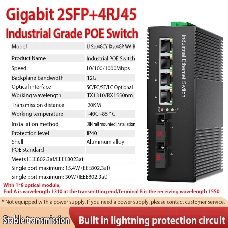 Gigabit Non-Net Managed Rail Type Switch POE Power Supply Industrial Grade Switch Lightning Protection 4KV 2SFP+4RJ45