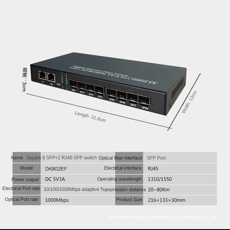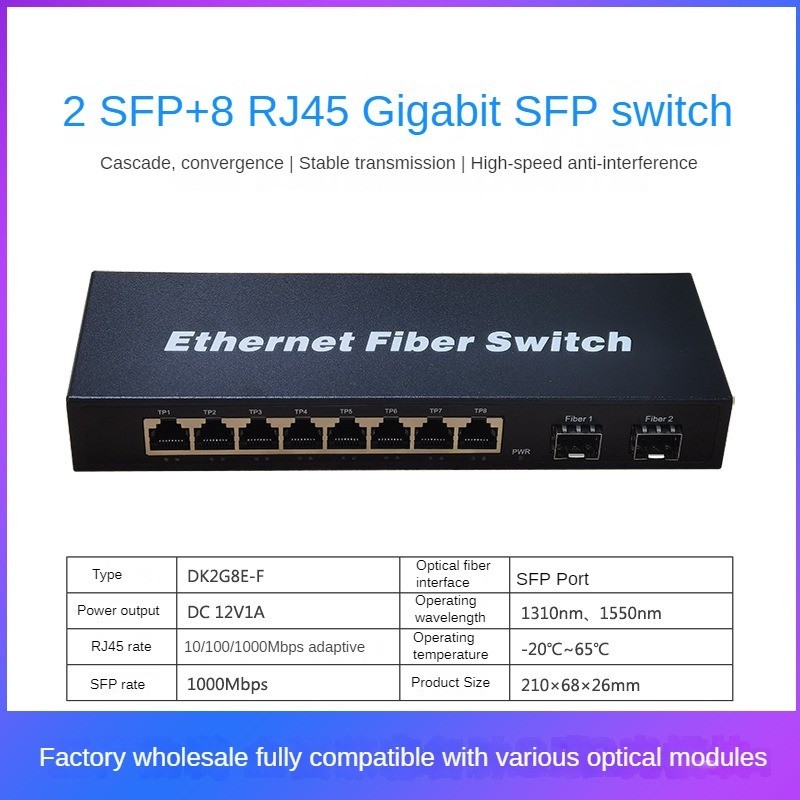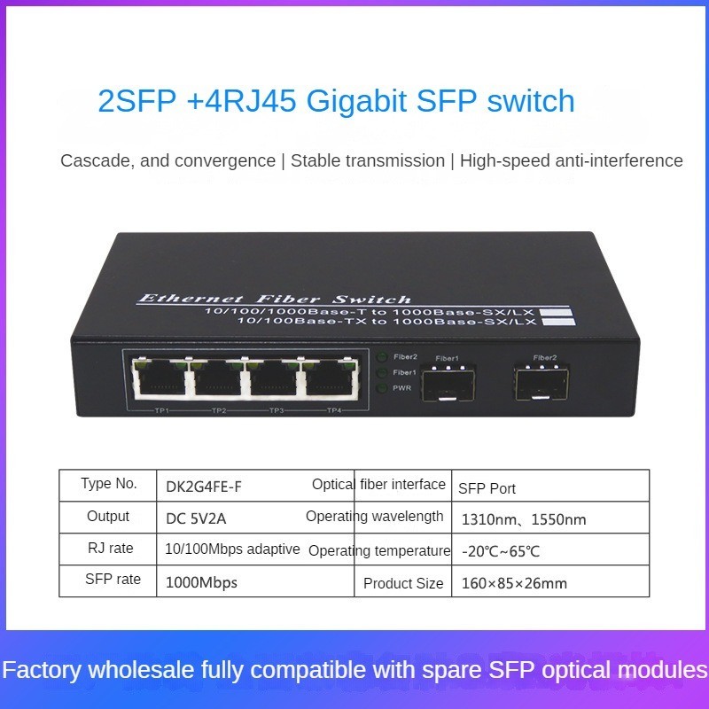 Gigabit SFP Fiber Optic Switch 8SF 2RJ45 LC/SC Port 4SFP+3RJ45/2SFP+4RJ45 SFP Switch