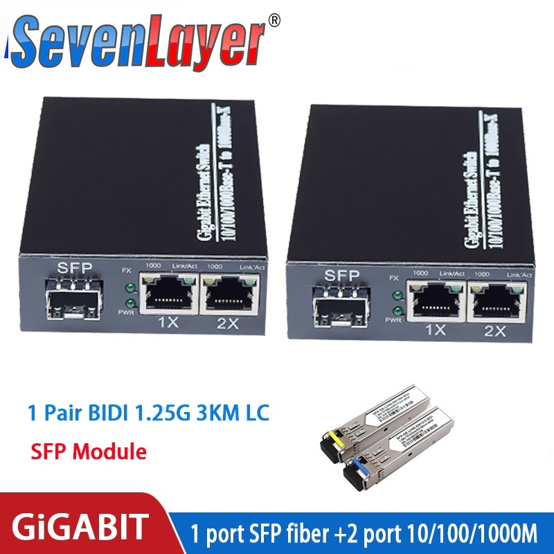 Gigabit media converter 1 sfp to 2 rj45 UTP gigabit optical fiber ethernet for ip camera 10/100/1000M