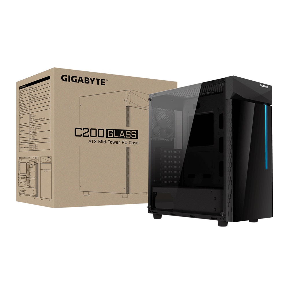 Gigabyte C200 Glass ATX Mid Tower PC Case - Black