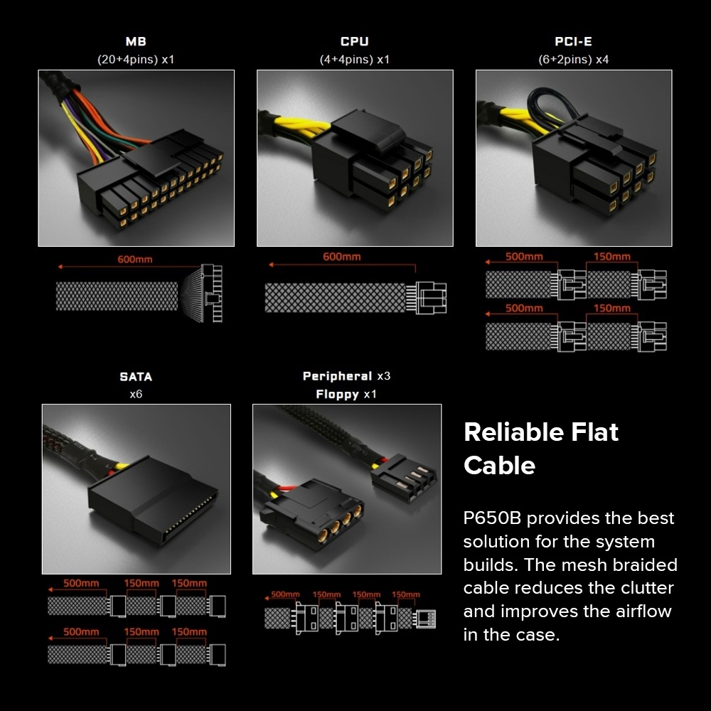 Gigabyte P650B 650 Watts (650W) 80 Plus Power Supply Bronze, Brand New, Reliable Mesh Braided