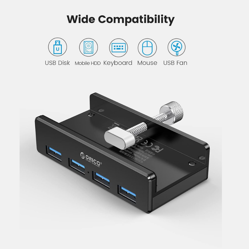 Gigaware Orico MH4PU 4 Port USB 3.0 Hub Desktop ClipType Hub with Buckle Aluminum Alloy Clamp Design