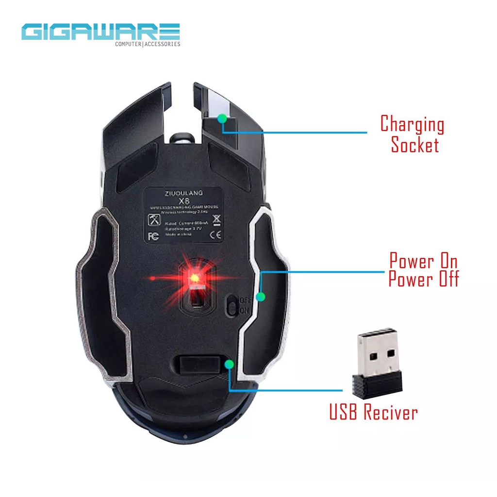 Gigaware Wolf X8 6 Buttons RGB Back-light Wireless Charging Gaming Mouse